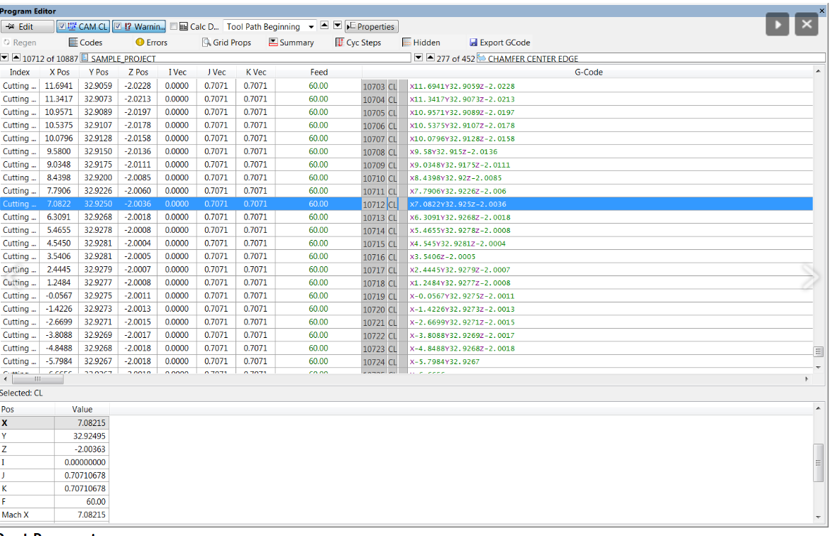 CAMplete TruePath te da un nivel de control sobre tus programas. Usar el editor de CAMplete TruePath te permite modificar los datos de la trayectoria de la herramienta de corte sin procesar o ya procesados. Independiente de lo que se haya editado siempre hay una sincronización, no se requiere post procesar o no post procesar.